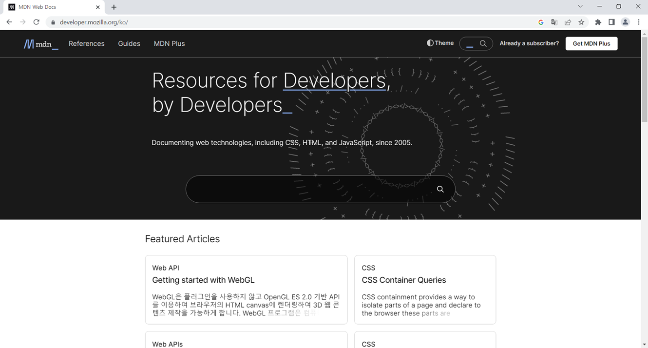 ③ https://developer.mozilla.org/ : 웹 표준과 모질라 프로젝트에 대한 개발 문서들이 담긴 사이트
