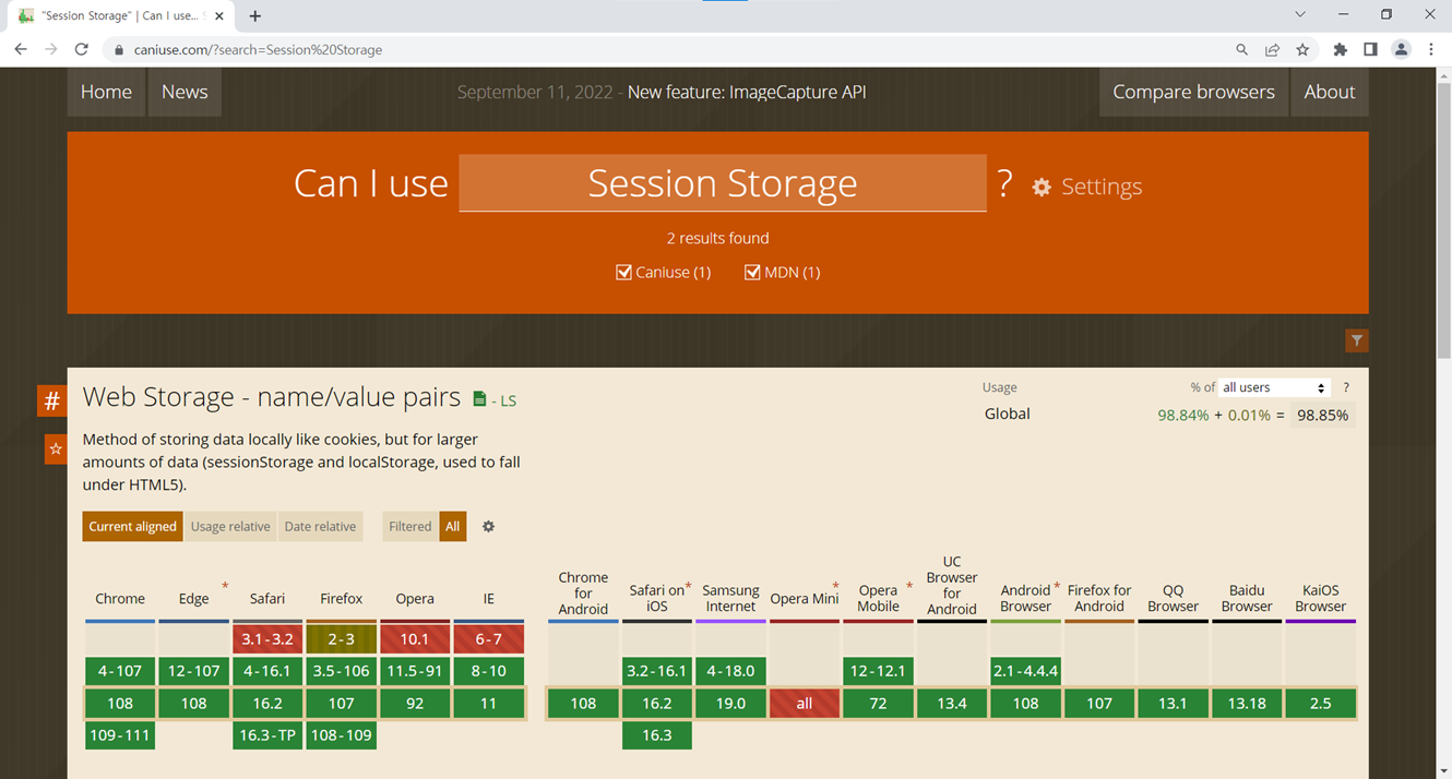 ① https://caniuse.com/ : 브라우저 별로 사용가능한 웹 기능들을 확인 할 수 있는 사이트