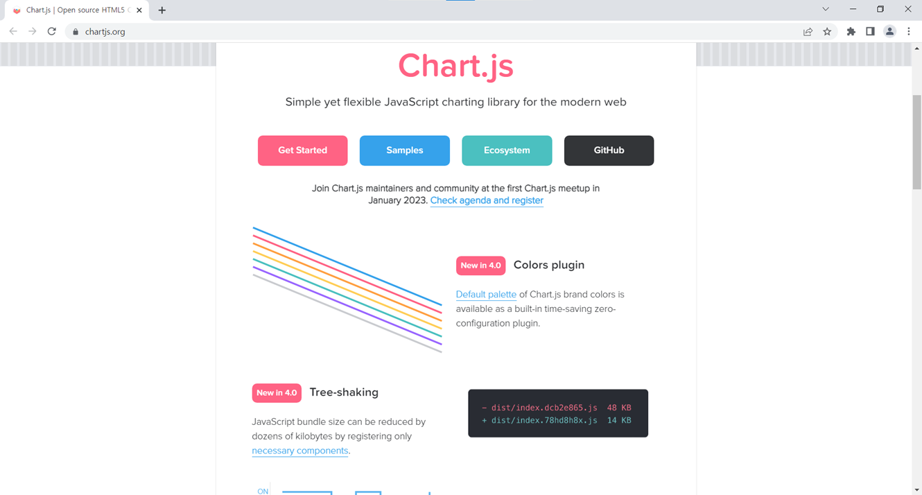 ④ https://www.chartjs.org/ : 데이터 시각화를 위한 차트를 그릴 수 있는 자바스크립트용 라이브러리