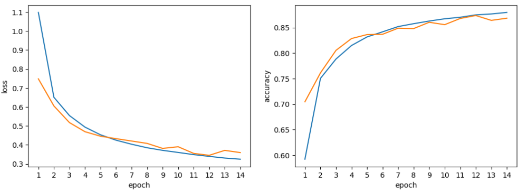 - LeNet이 패션에 문외한인 저보다 잘 맞출 것이기에 뭔가 이유가 있을 거로 생각하며, 예측이 틀린 이미지를 10개 정도 골라서 추측해 봤습니다. 드레스나 코트 같은 부분은 제가 봐도 티셔츠나 드레스 착각할 수 있을 것 같은 내용이라 수긍이 되었습니다. 사람에 따라 다를 수 있겠지만 86%(0.8595) 정도의 예측률이면 우리 LeNet이가 매우 잘 해냈다고 생각합니다.
