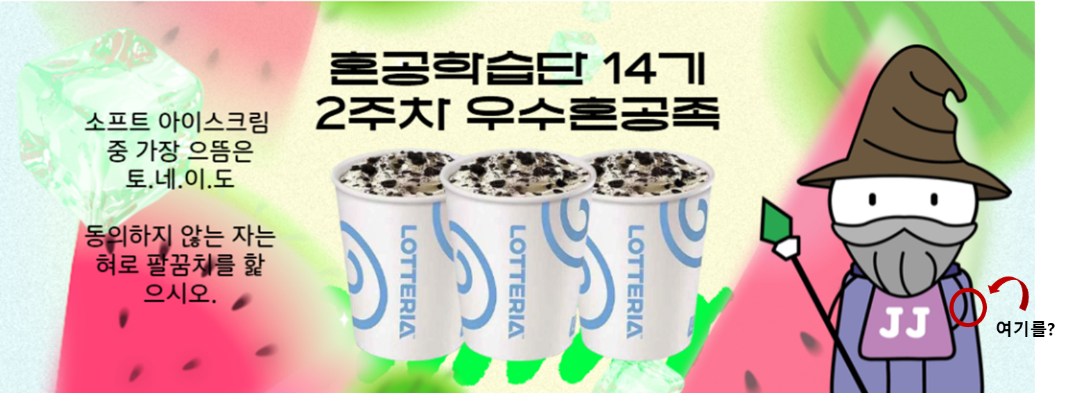 지난주, 2주차 우수 혼공족으로 선정되어 롯데리아 아이스크림을 받았습니다. 집에서 다소 떨어져 있어 아직 맛보진 못했지만, 그 덕분에 이번 주 숙제는 달콤한 에너지를 얻어 더욱 즐겁게 시작할 수 있었습니다. 사실 이번주에도 꼭 우수 혼공족에 선정되고 싶은 마음에, 평소보다 더 열정적으로 임했습니다.