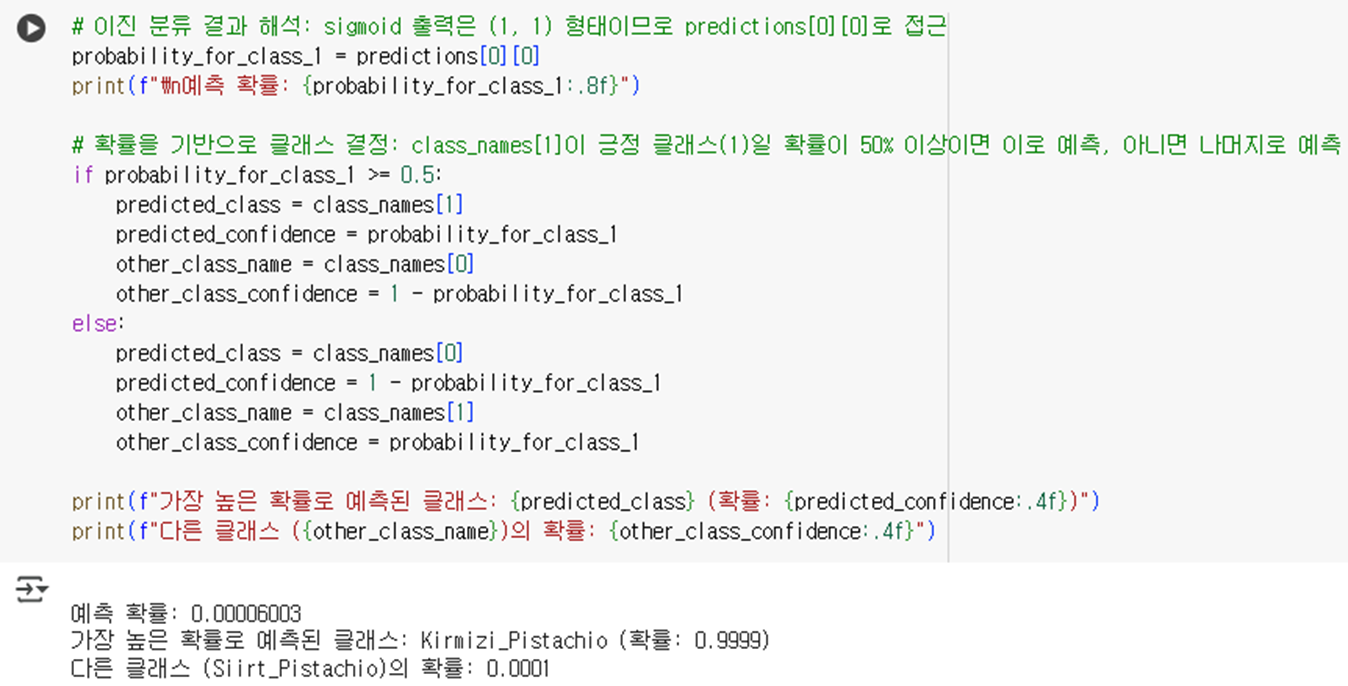 ▷ Ch.03(03-3) 사전 훈련 모델로 피스타치오 품종 이미지 분류 실습 후 결과 캡처하기