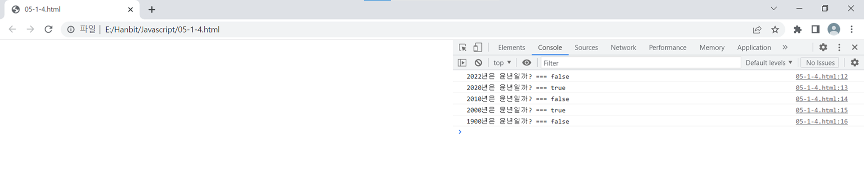 p. 202 <윤년을 확인하는 함수 만들기> 예제를 실행하여 2022년이 윤년인지 확인하는 결과 인증