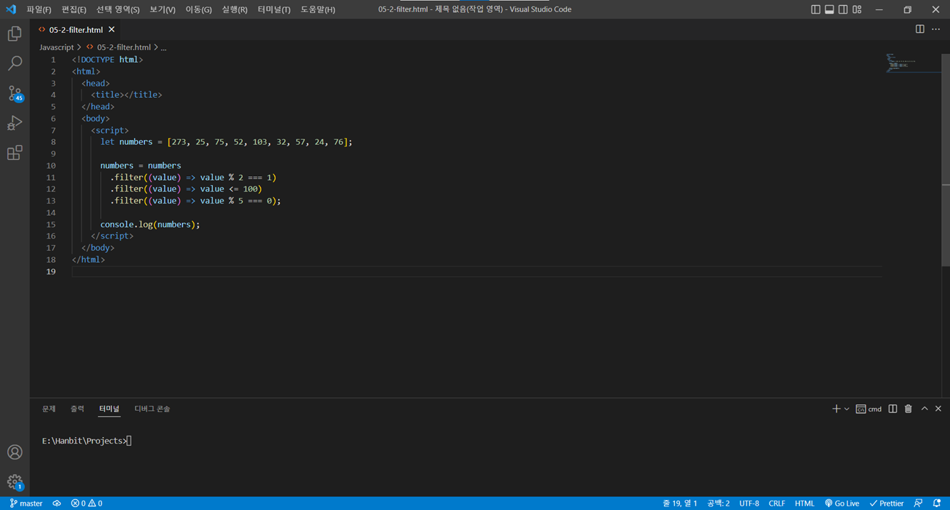③ 여기서 다시 5로 나눈 나머지가 0인 수만 추출하는 경우 [25, 75] 값이 최종적으로 남게됩니다.