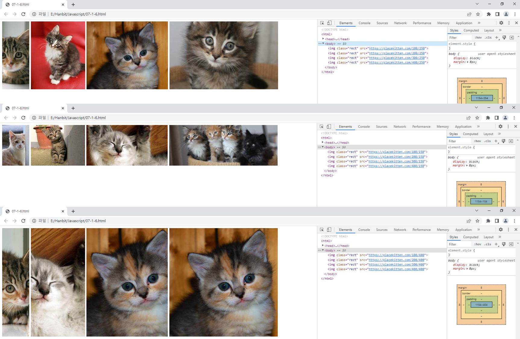. 높이를 250으로 했을 때, 책의 결과값과는 다른 결과를 얻었습니다. 해당 사이트의 이미지가 교체된 것으로 보입니다.