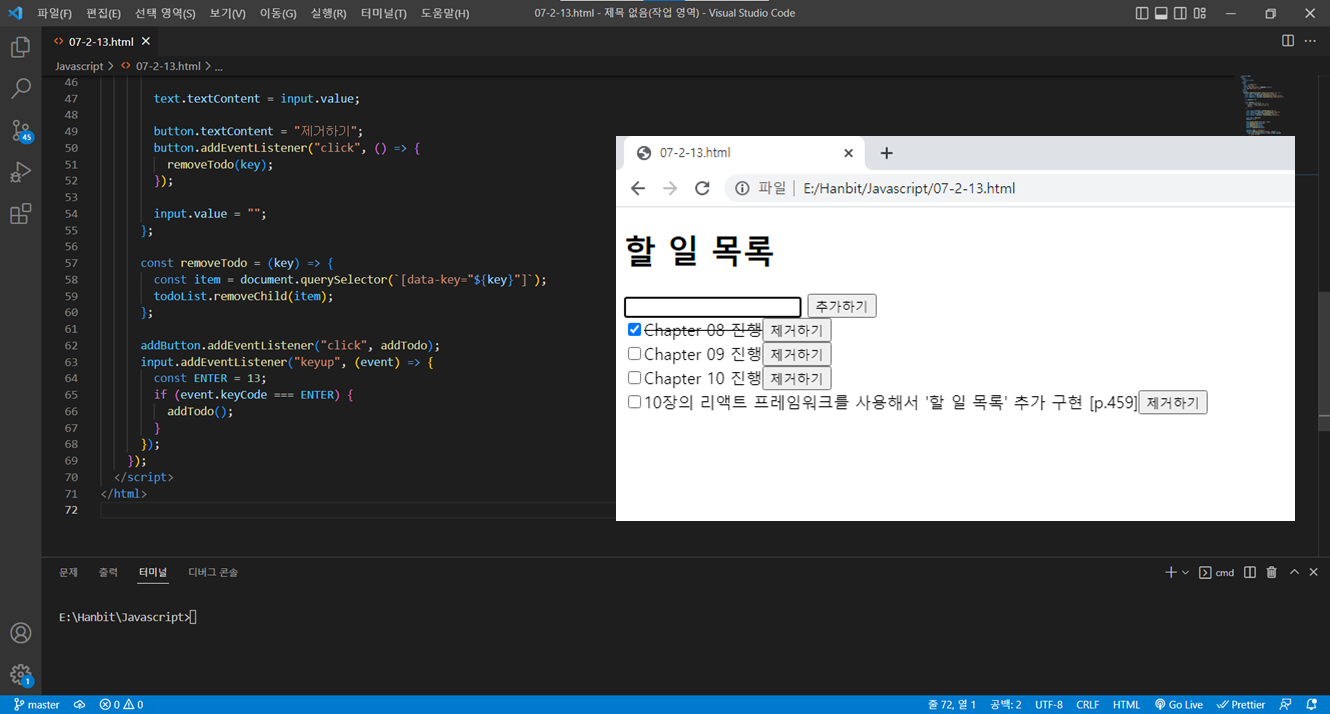 - 물론 10장의 리액트 프레임워크를 사용해서 '할 일 목록'을 추가 구현하는 부분을 해보고 싶어서입니다. [p.459]