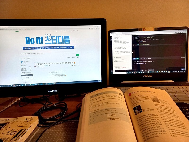 2. 미션 인증샷을 남겨 주세요! (책과 함께 공부하는 모습을 찍어주세요! 책과 모니터가 함께 보이면 더 좋아요!)