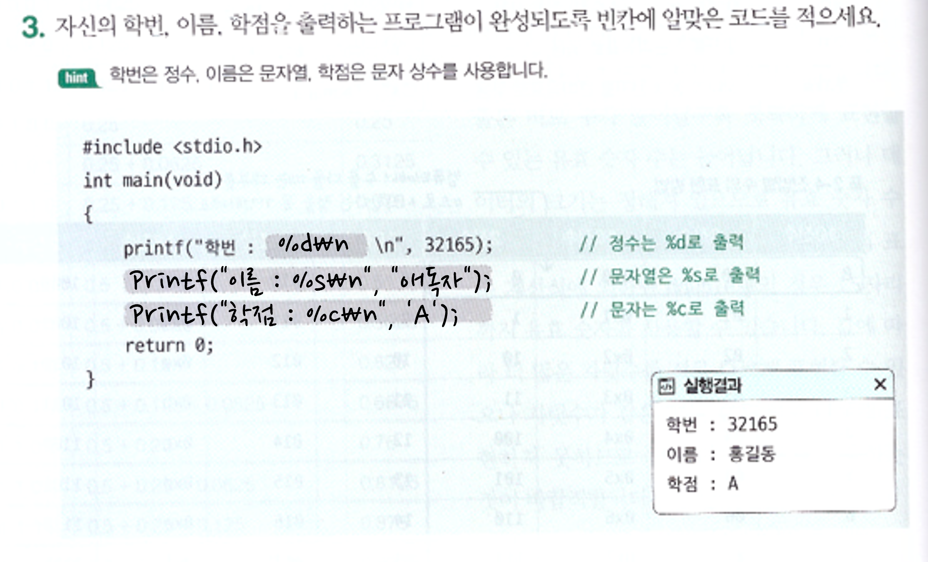 . C프로그램에서 값을 표현하는 방법 결과를 화면에 출력하는 방법: printf 함수