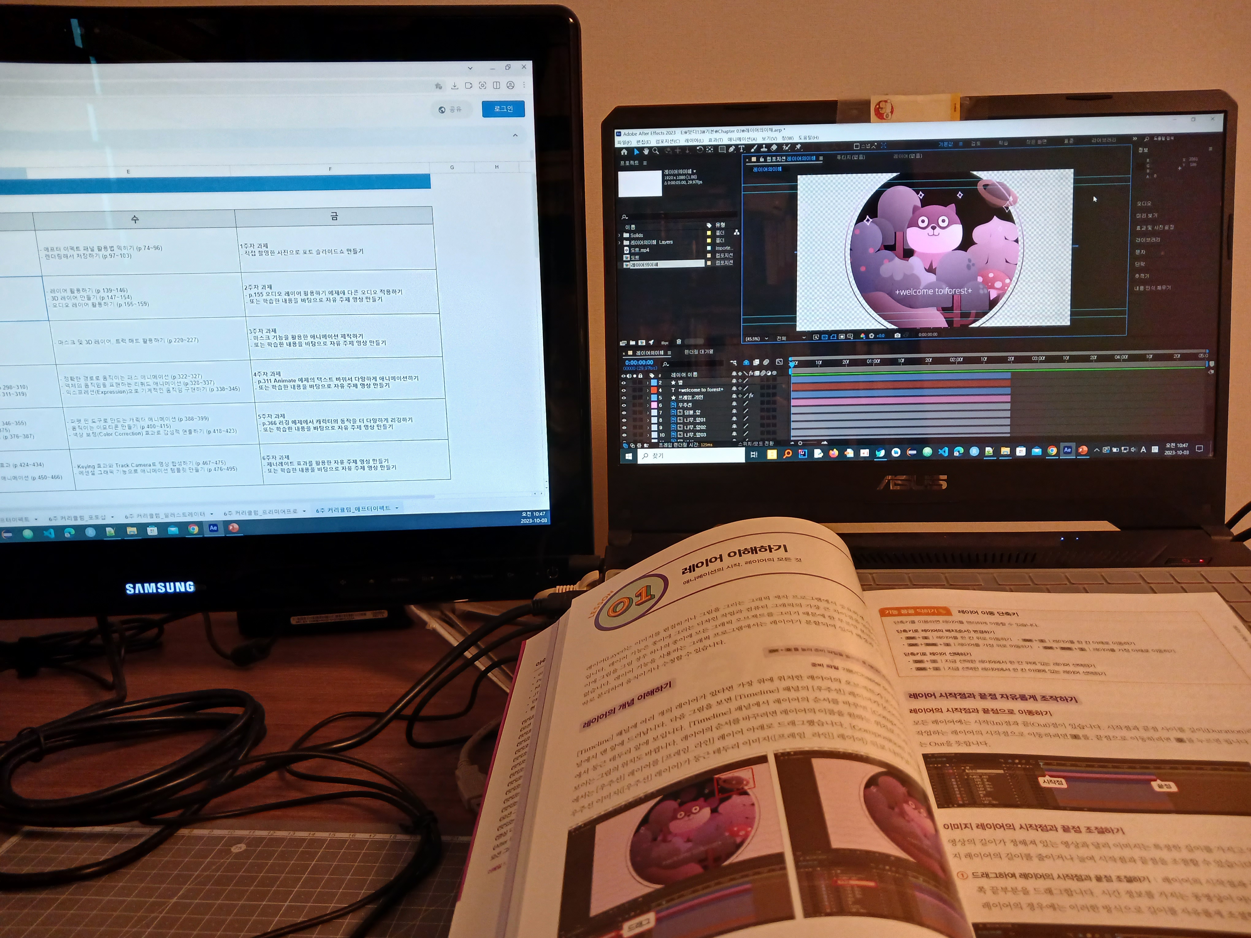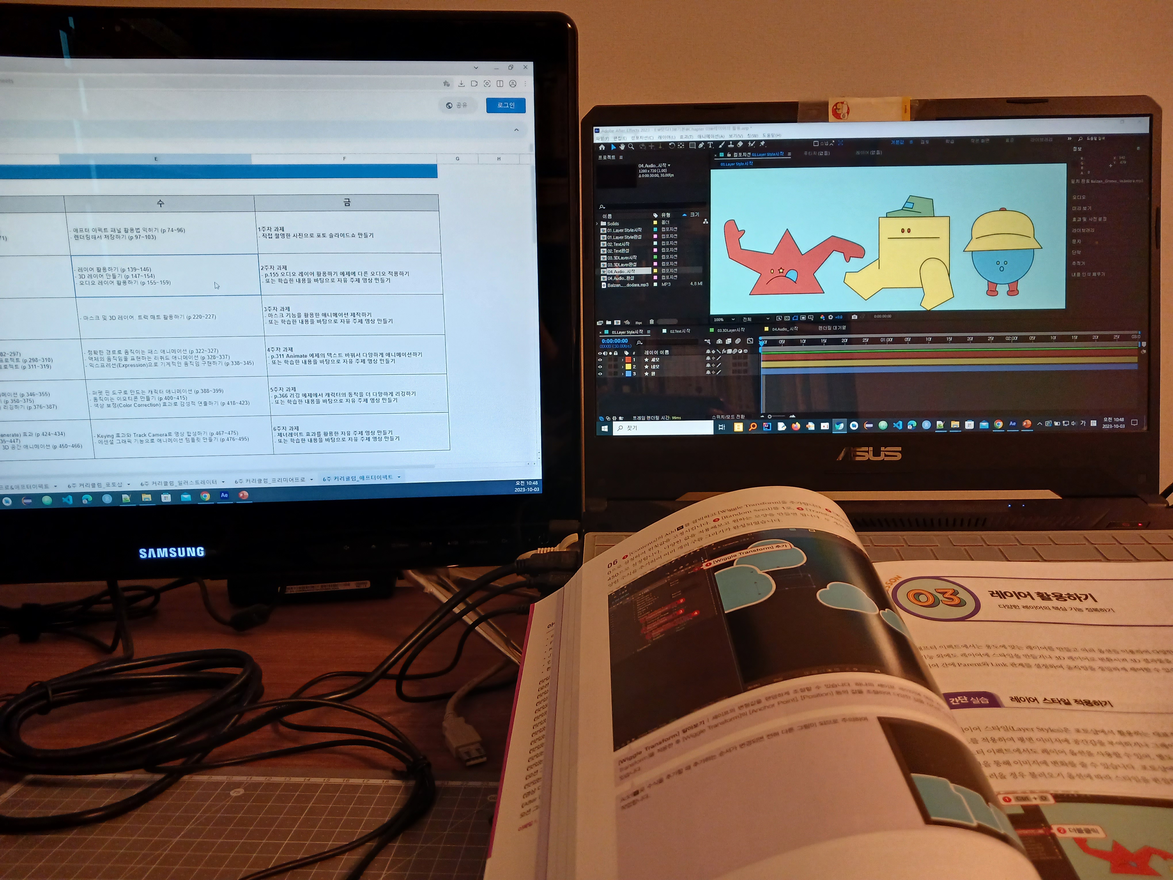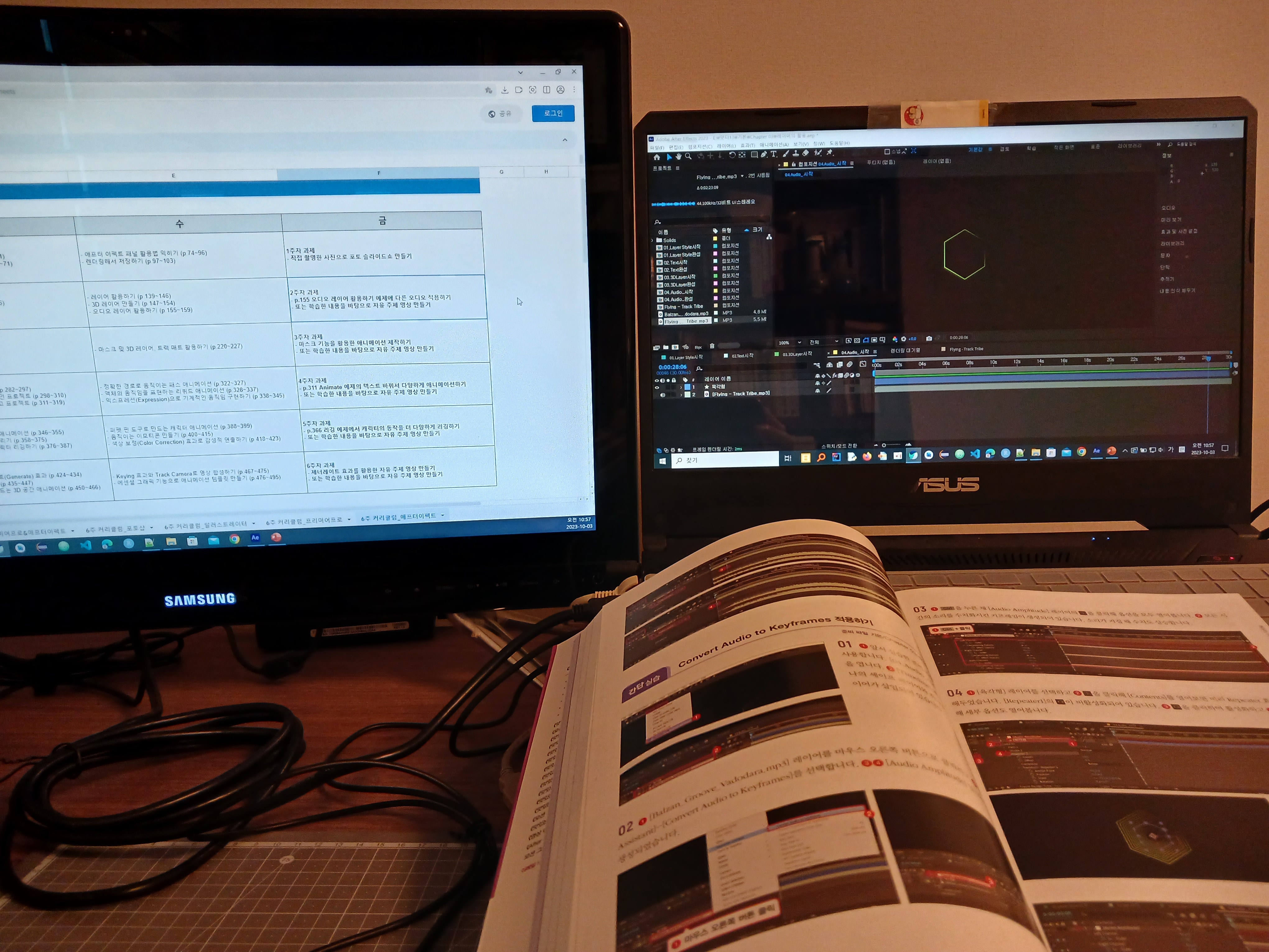 - p.155 오디오 레이어 활용하기 예제에 다른 오디오 적용하기 - 또는 학습한 내용을 바탕으로 자유 주제 영상 만들기 |