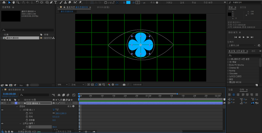 . 셰이프 레이어(Shape Layer): 형태를 그리는 모양 레이어로 애프터 이펙트의 대표적인 벡터 기반 레이어