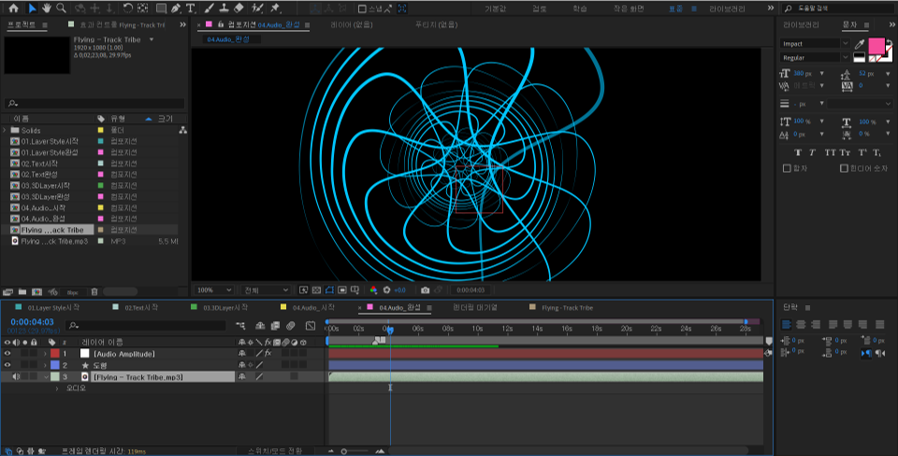 - 오디오 레이어 활용: 오디오 파일을 불러와 음악을 삽입하거나 편집, 이펙트 적용