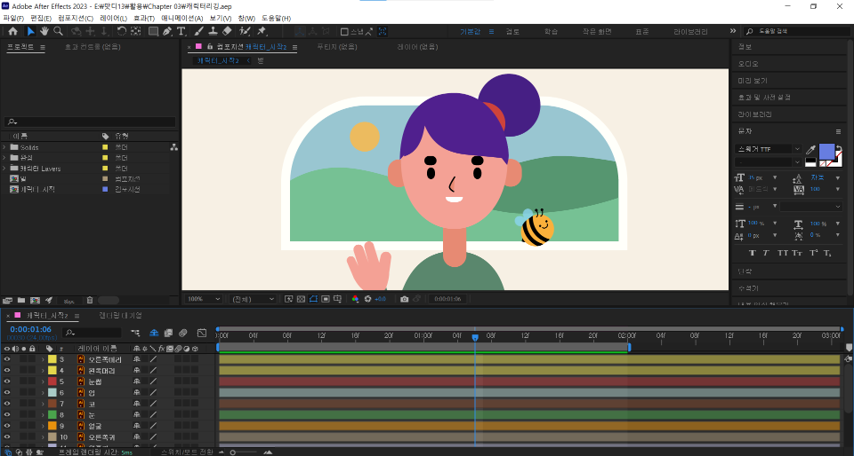 - 셰이프 레이어 기능으로 캐릭터 그리기 (p.358~375) - 트랜스폼과 페어런트 기능으로 캐릭터 리깅하기 (p.376~387) |